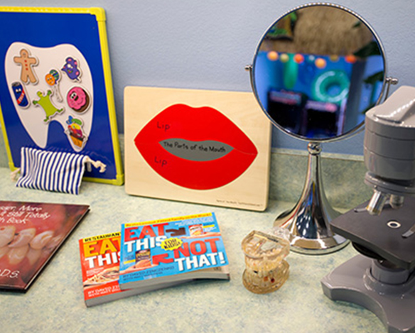 In The Learning Lab, your child gets to enjoy hands-on discovery about dental health. They can wear a lab coat, conduct experiments, look at X-rays, use a microscope to look at bacteria, learn about the parts of a tooth, and understand how food and drink choices can impact their teeth. These fun activities are always changing and can help your child develop skills that inspire a lifetime of healthy dental habits.